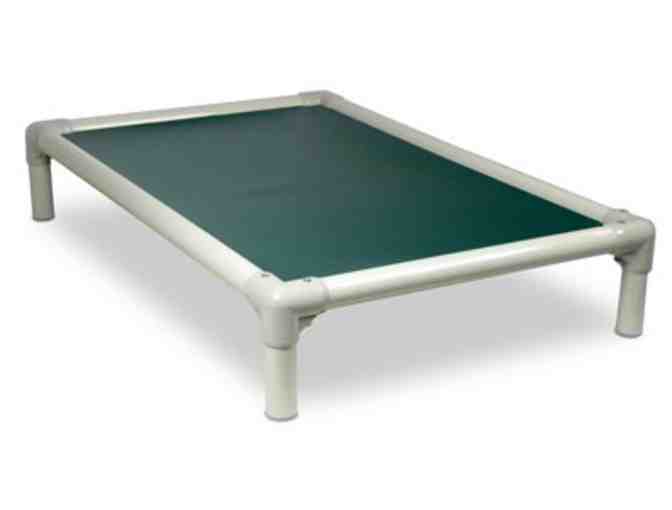 Give your dog a lift with the orthopedic support and comfort of a patented Kuranda chewproof dog bed. Our furniture grade poly resin dog bed looks beautiful in any home, yet it's built tough for outdoor use. The walnut colored frame, legs and corners blend perfectly with our wide choice of fabric colors. The UV resistant finish on our frame is guaranteed to stand up to the outdoors and repeated cleaning. All Fasteners are Stainless Steel. Each bed is covered by the Kuranda 1 year warranty.