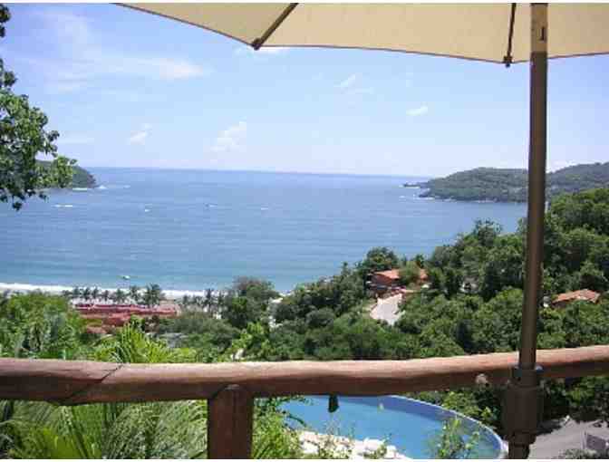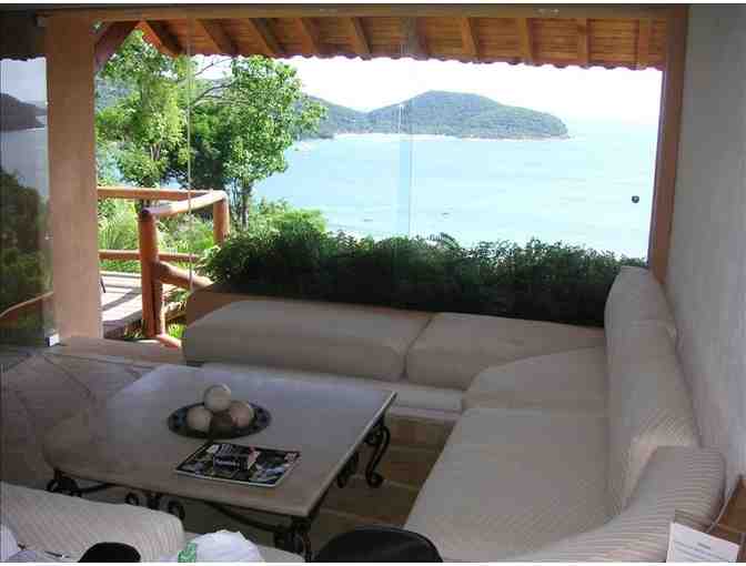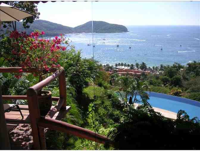 Enjoy a week's stay in this beautifully appointed, one bedroom, one bath deluxe condo in Zihuatanejo, Mexico. Enjoy a lovely, authentic and safe Mexican community where a smile and a kind "Buenos Dias" will greet you every day. Look at that million dollar view of the beach! Includes maid service every other day, in condo wireless, satellite TV, garden, terrace and beautiful, fully private deck.