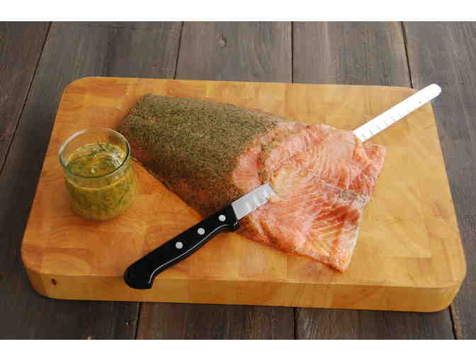 A cured salmon done the Danish way! Accompanied by a mustand/dill sauce. Serves 18-20 as an appetizer.