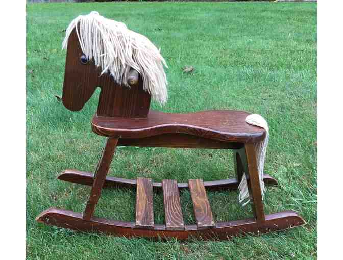 This handmade rocking horse has been enjoyed by many children over the years. A little worn perhaps, it could be refinished, left as is or painted in fun colors.