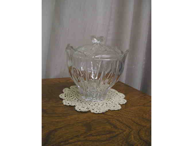 Delightful crystal candy dish with lid to decorate for any occasion.
