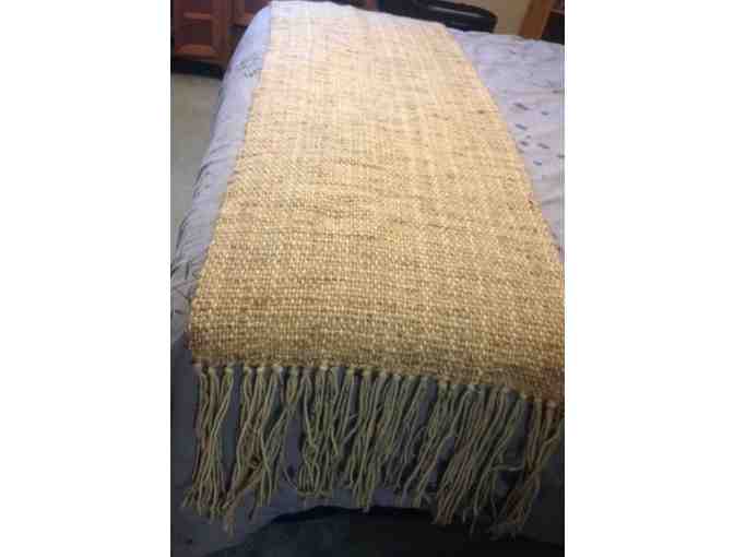 Hand woven of 100% heavy weight pure wool and slub weave yarns. 10” fringe. Perfect for a bed throw. Will provide warmth on cold nights.