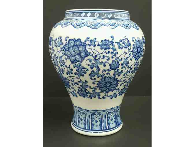 Straight from China! A beautiful bouquet will look even prettier in this Chinese antique style blue and white porcelain Qianlong Mark vase.