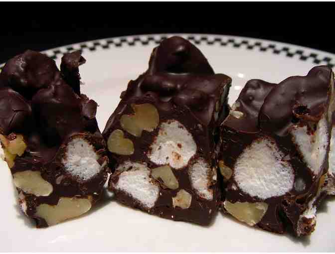 Fine dark chocolate, walnuts and marshmellows makes for a wonderful dessert.