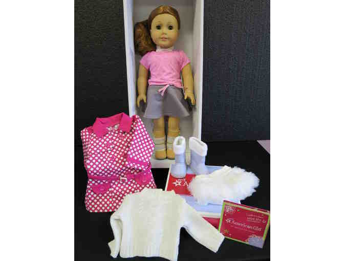 Your princess will love her red-haired, green-eyed, 18” doll. She comes with a white sparkle-knit sweater, white fluffy faux fur skirt, leggings and tall purple boots with furry trim for lots of winter fun. Or change her into her bright-pink belt. Don’t wait too long – these outfits are only available here!
