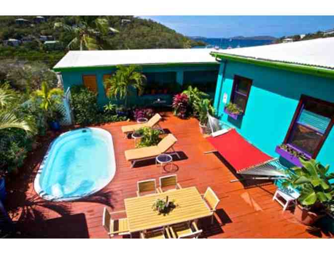 Experience the magnificent sunset views while you enjoy our complimentary morning breakfast and nightly happy hour! Right in the heart of Cruz Bay. Conveniently located just minutes walk from the ferry dock. Call 340-693-8688 or email:  reservations@stjohninn.com