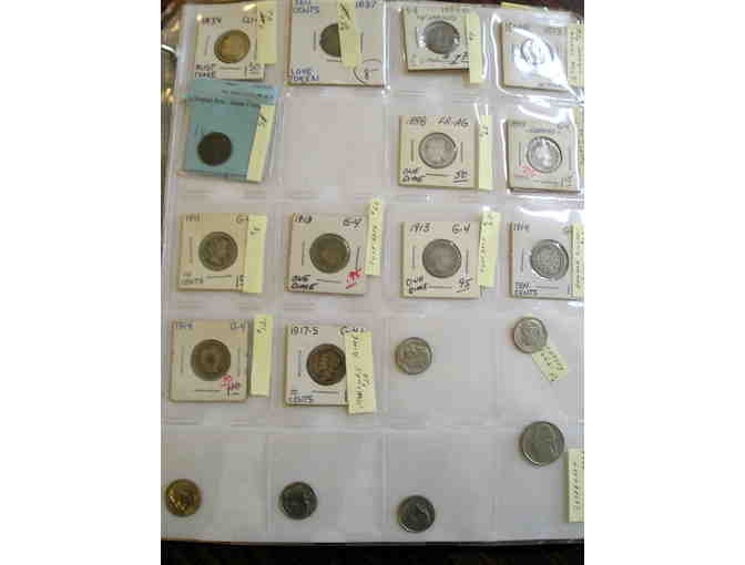 This package includes the following dimes: 1834 Bust; 1837 Liberty Seated Love token; 1853 Liberty Seated; 1854 with arrows; 1873 uncirculated Liberty Seated;1898 Barber Head; 1899 Barber Head; 1911 Barber Head; 1913 Barber Head (2); 1914 Barber Head (2); 1917 Mercury; 1999 Roosevelt (5); 1999-d Jefferson nickel.