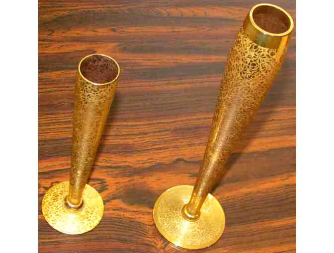 Vintage Gold Encrusted Flowers Glass Bud Vases, set of two