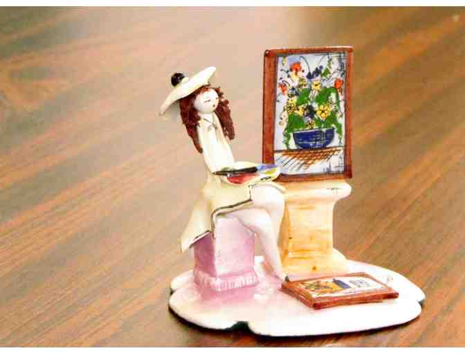 This tiny artist is full of attitude and character! Set her on a shelf or at your desk for some artistic inspiration.