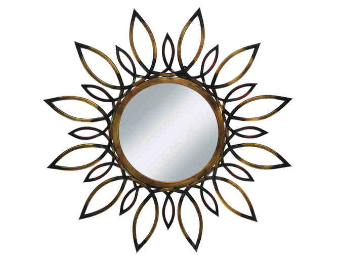 See yourself in a new light with this gorgeous sun mirror. The elegant shape of the sun around the smooth mirror in the center gives it a beautiful finish. Perfect for modern and contemporary living space with other sleek home decor. Depth 31" Color Bronze, silver Materials Metal