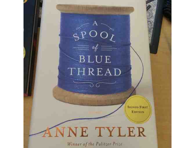 Hardcover copy of "A Spool of Blue Thread" autographed by author Anne Tyler.