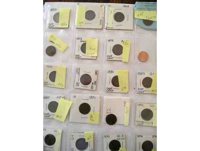 Coins in this package include: Indian Head Pennies-1859, 1865, 1868, 1873,1875 (2), 1878, 1881 (2), 1883, 1889, 1891, 1892 (2), 1893 (2), 1895, 1896.