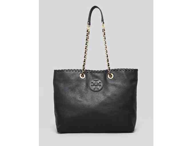 Bid Now on this authentic brand new beautiful Tory Burch Black leather Tote and help a Shelter Animal!