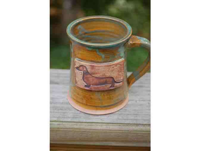 This mug is handmade by foster mom Jami of Applewood Pottery. These hand-painted and fired mugs are microwave, dishwasher, and food safe. Each one will vary slightly in color pattern due to the handmade nature of this item.