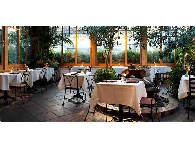 Cafe Flora has also carried its eco-conscious philosophy into its atrium, a charming garden retreat just off the main dining room. The garden atrium brings al-fresco dining to guests year round. Bathed in natural light, the space boasts exotic greenery, a bubbling central fountain and natural stone accents. The collective effect creates a warm, appealing and calming environment for guests.