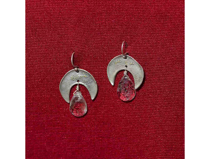 Hand-made in Portland, Oregon, these earrings are crafted using old world and primitive techniques. Hand fabricated from sterling silver and high karat gold, they are finished with an antique patina and a low polish to bring out the beautiful contrast hidden in the rich textures. The rutilated quartz drops add a touch of elegance to an old world look.