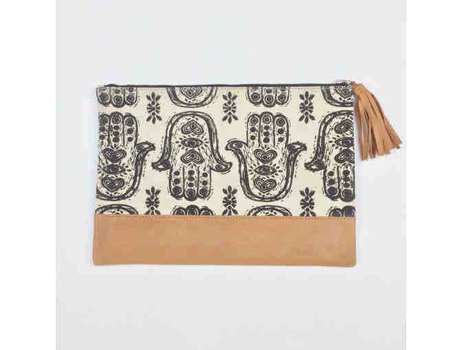 A very chic pouch made of hand-printed Cotton Canvas fully lined inside with waterproof Nylon.