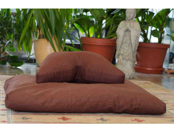 Beautiful full-size zabuton and crescent-shaped zafu to support your meditation practice.