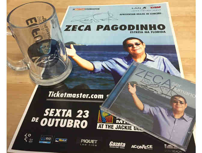 Bid on this autographed copy of Zeca's most recent CD Ser Humano, an autographed show poster - and a Zeca mug! Enjoy a cool drink while enjoying this beautiful CD, the classic sound of the streets of Rio de Janeiro. ¡Que legal!