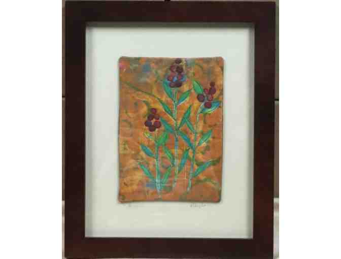 This hand appliqued, embroidered and framed original art quilt creation is by Missouri based artist Rebecca Douglas.