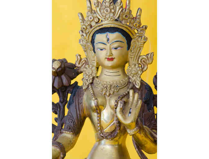 This exquisite bronze White Tara is crafted in the traditional Tibetan style. Standing 8.5" tall, it would make a perfect gift for a loved one or yourself for your home altar.