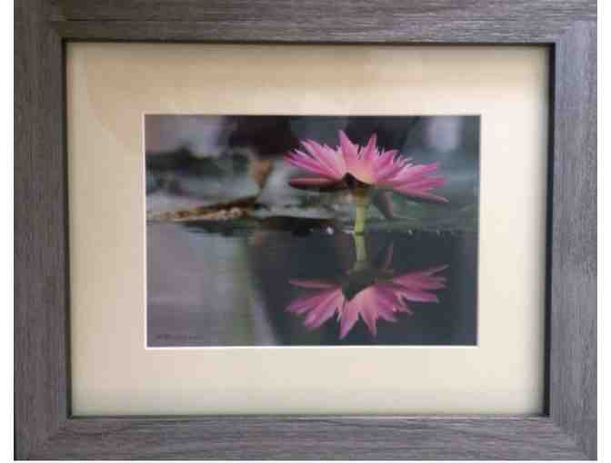 This gorgeous water lily print is matted in an 11x14 wooden frame.