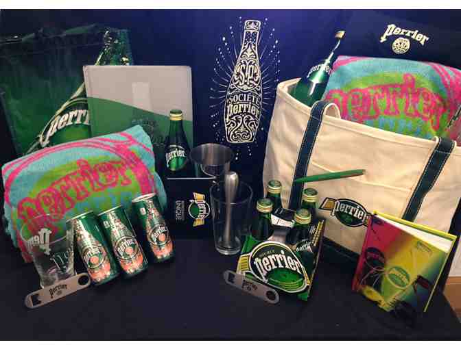 This is a rich collection of top-quality Perrier items including Perrier classic water in various sizes, the new slimcans in Pink Grapefruit, Perrier logo glasses (dishwasher sturdy!), cocktail shaker, bar tools, two gorgeous and colorful beach towels, pens, notebooks, shirts and much much more. Includes a sturdy Perrier canvas tote and a solid green tote as well, plus a commercial-quality basket to carry your winnings home! Merci to event sponsor, Perrier and Nestle Waters USA!
