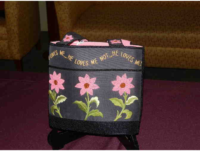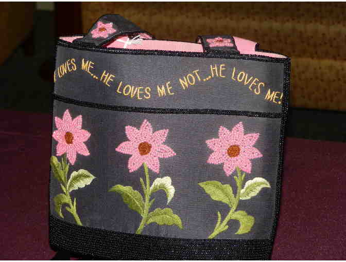 Get ready for spring with this cute floral purse - you don't need to pick petals off a flower to wonder "He Loves Me, He Loves Me Not" just take a look at your bag!