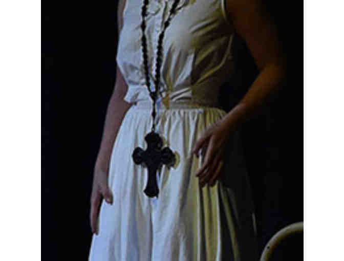 This beautiful black cross necklace was used onstage to keep vampires away. Now it can be yours to wear, or display in your home as a piece of history from the 2015 Season!