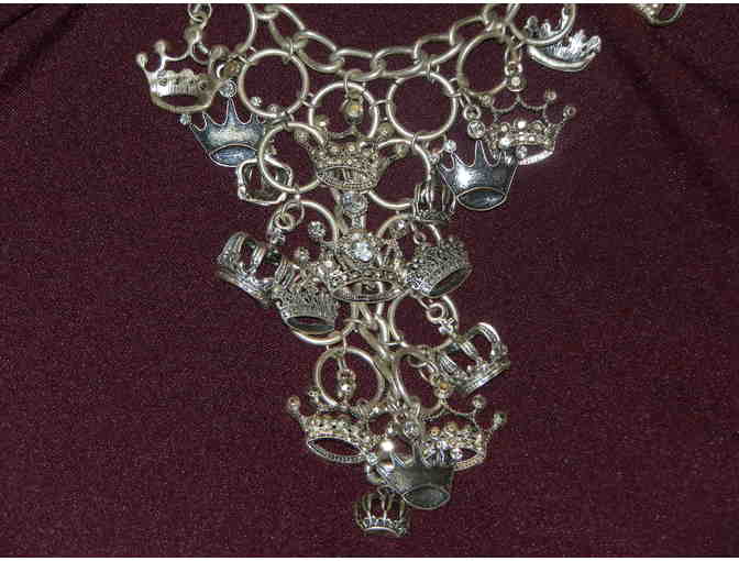 Bling bling bling! This stunning necklace is fit for a queen! Why wear one crown on your head, when you can wear multiple crowns around your neck! Let everyone know who the real queen is.