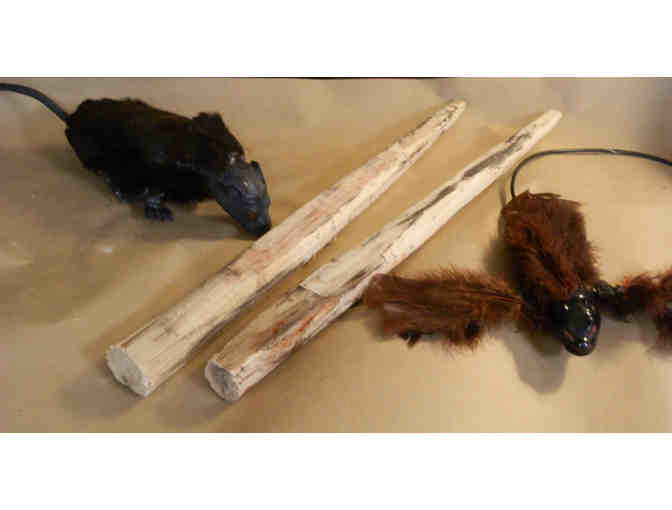 Halloween may have just ended but it's never too early to get a headstart for next year's October 31. This spooky package includes: A Rat, A flapping bird (the wings actually flap) and 2 stakes to take out all vampires.