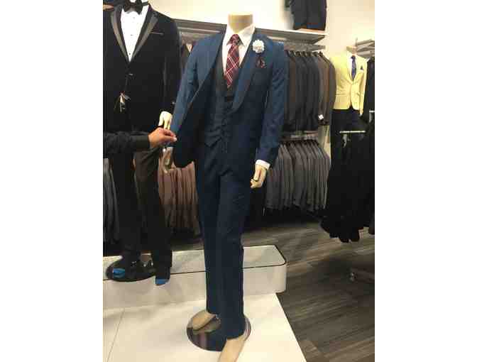 Lawrence Clothier located in the Springfield Town Center, Virginia has donated a tuxedo blue with black lapels. This included jacket, vest and pants.