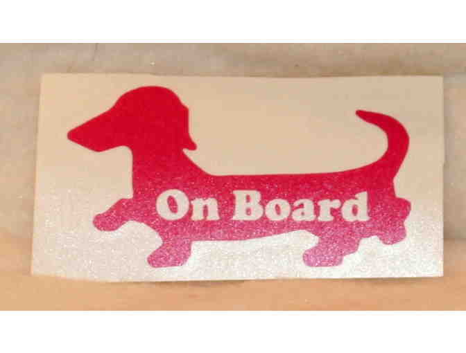 This adorable auto decal measures about 4" x 3" and is an adorable way to share your car with your special passengers!