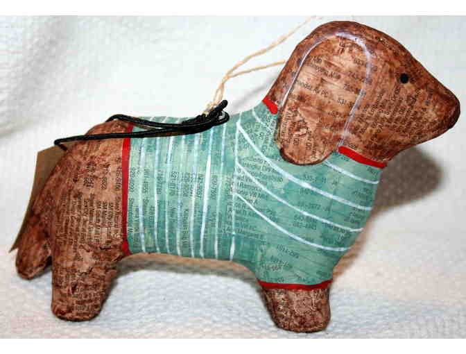 Hand Crafted Paper Mache' Dachshund Dog Christmas Ornament