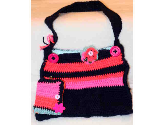 This great handmade purse has a matching coin purse and is hand crocheted from soft yarn. Perfect boho chic piece, this purse will go from day to night!