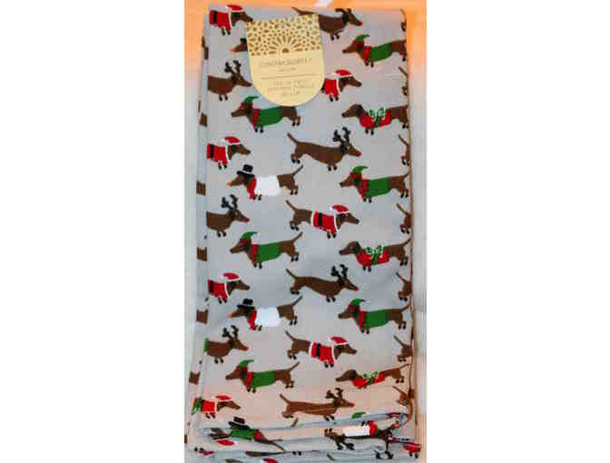Absolutely adorable - set of two dachshund Christmas towels featuring dachshunds in santa hats, elf costumes, Rudolph and Frosty outfits! Set of two measuring 18" x 25".