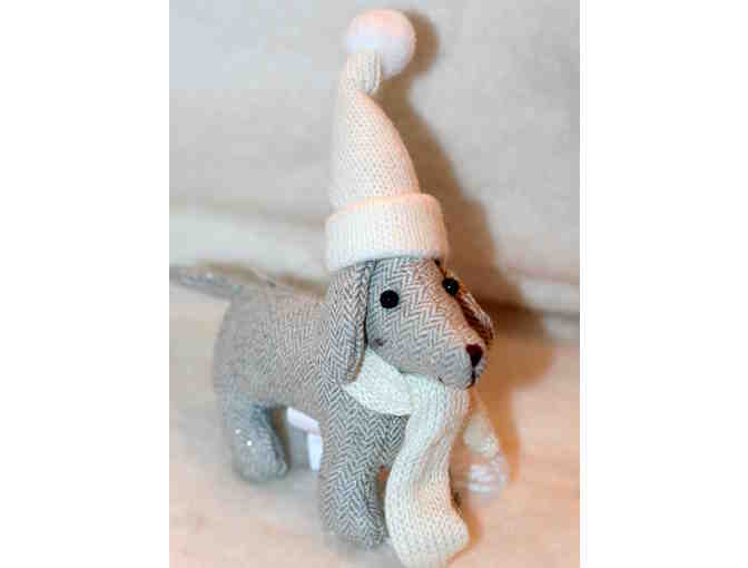 Gray Dog Christmas Ornament with Hat and Scarf