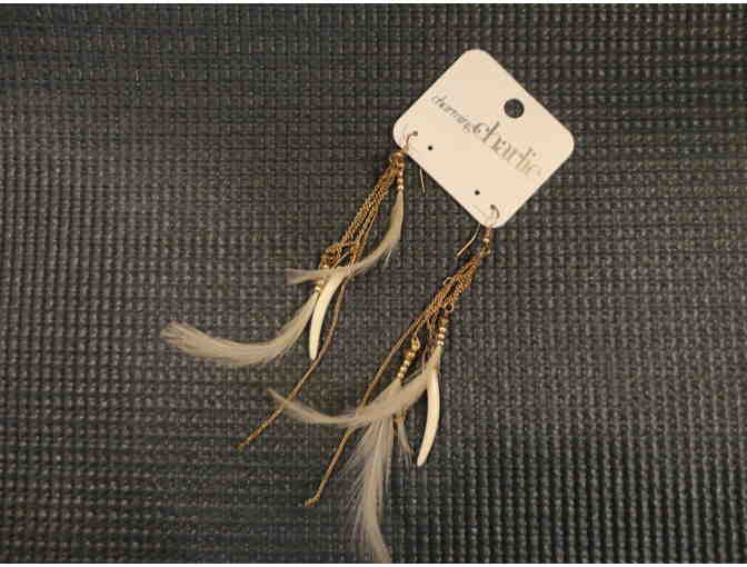 Dangle Gold white feather and tooth earrings NEW from Charming Charlie