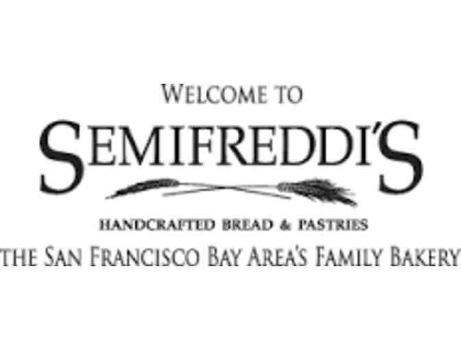 From Semifreddi's Bakery, enjoy bread for one year (one loaf per week). Semifreddi's is a family owned and operated bakery in Alameda. The Semifreddi's folks say that baking is their passion, and they don't mind calling themselves bread and pastry nerds. Yum!