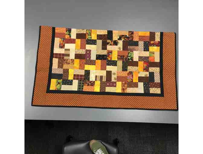 This beautiful handmade quilt is perfect for autumn decorating and was created by The Old Capitol Quilters Guild. It is 44.75" x 38.5". Made with a lovely cotton fabric for easy care, the back of the quilt uses fabric that compliments the design.