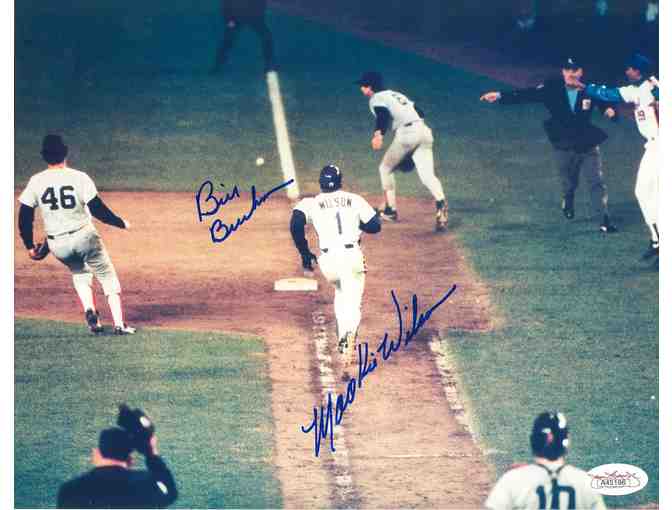 This incredible framed collage has been personally hand-signed by Bill Buckner and Mookie Wilson.
