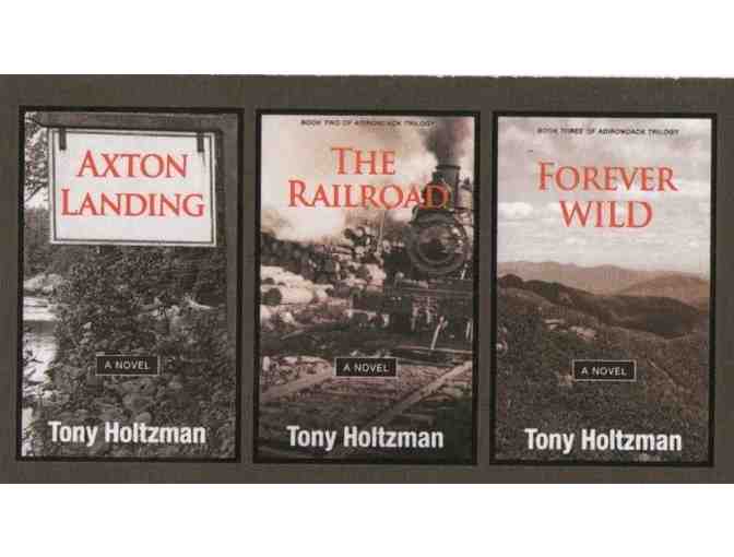 Autographed! Tony Holtzman's monumental Adirondack Trilogy, which traces thirty years of conflict, love, and tragedy in the history of the Adirondack Mountains through the lives of the mythical Carter family whose members interact with true characters in the mountains. Described in more detail on the following pages, the three novels have been widely acclaimed by writers in the Adirondacks - Axton Landing, The Railroad, Forever Wild.