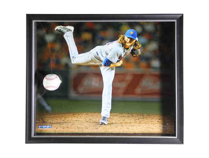 New York Mets star pitcher Jacob deGrom has personally hand-signed this autographed baseball which is included in this framed breakthrough collage.