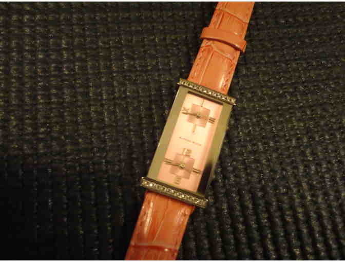 Genuine Leather Pink Womens Watch, Stainless Steel face with two time zone option.