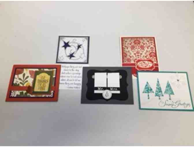 Be ready for every occasion and holiday throughout the year with this collection of approximately 48 beautiful handmade notecards! All cards are made by Shelly Tesch and include coordinating envelopes.