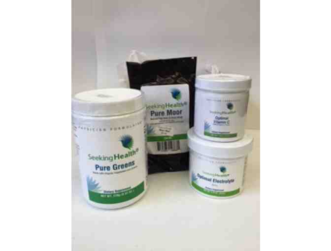 Included in the gift basket is pure greens, optimal electrolytes, optimal vitamin c, and pure moor detox bath.