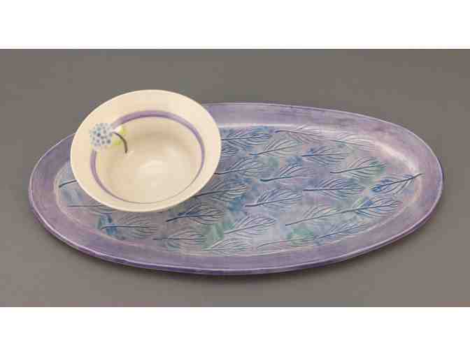 Soothing blues & greens and soft purples meld pleasantly in the enchanting design of this ceramic serving tray and dish, made by Caroline's Clay Things.