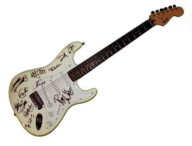 This is a brand new Fender Squier guitar featuring facsimile autographs from those in attendance at the 12/12/12 fundraiser held at Madison Square Garden. Signatures include The Rolling Stones (Mick Jagger, Keith Richards, Charlie Watts, Ron Wood), Pink Floyd's Roger Waters, Nirvana's David Grohl and Krist Novaselik, Bon Jovi, The Beatles Paul McCartney, Eric Clapton, and Bruce Springsteen.