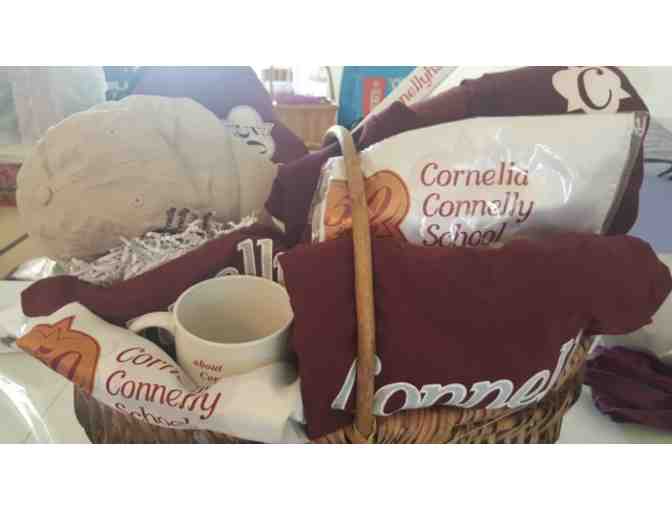 Established in 1961, Cornelia Connelly High School teaches young women to *Lead*Serve*Inspire*. Treat your little "aspiring Koala" to this basket brimming with Connelly "Swag!" This beautiful Cornelia Connelly High School gift basket is filled with alicense plate frame, khaki hat, mug, Christmas ornament, ladies V-neck t-shirts (S & L), tote bag, 2 scarves, sweatshirt (L), and a car sun shade.