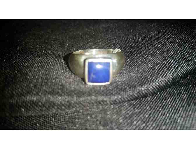 8mm square cut cab Lapis Sterling Silver band ring size 7.5